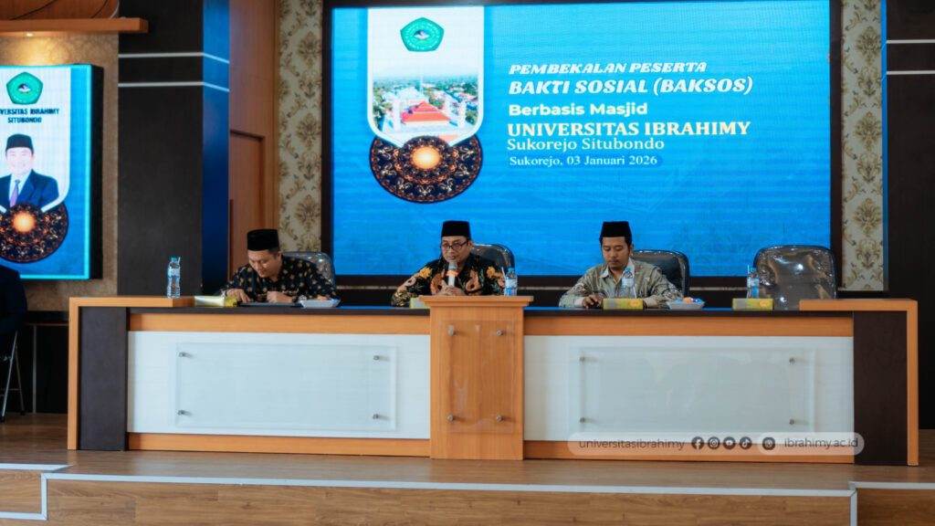 UNIB – Universitas Ibrahimy Sukorejo menggelar kegiatan “Pembekalan Peserta Bakti Sosial (Baksos) Berbasis Masjid” bagi mahasiswa semester V dari seluruh fakultas, Pada Sabtu (03/01). Kegiatan ini berlangsung di Auditorium KHR. As’ad Syamsul Arifiin mulai pukul 10.00 hingga kurang lebih pukul 16.30 WIB.